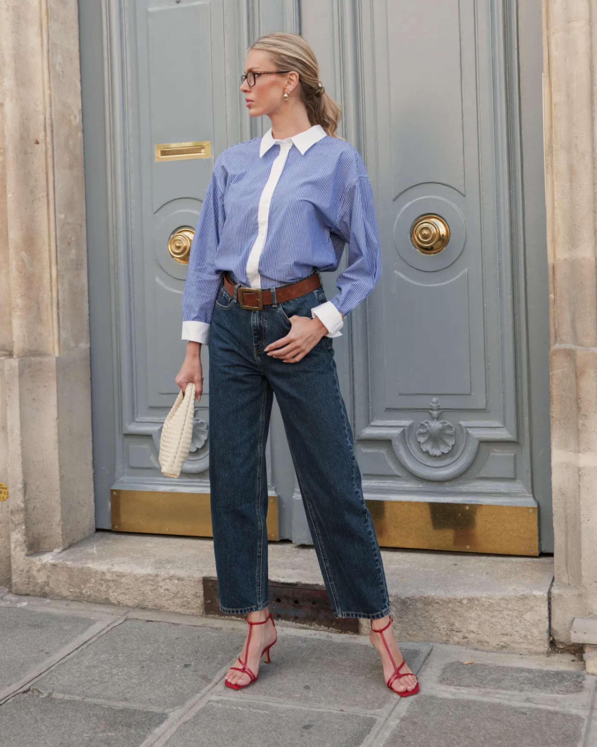 Our Celina high waist barrel leg Jeans are a flattering fresh take on the wide leg jean trend. To create the barrel shape there are darts at the knee and ankle, style them with a slim fitting top, shirt, blouse or knit to balance out the shape of the jeans. Celina comes in a versatile blue denim wash.